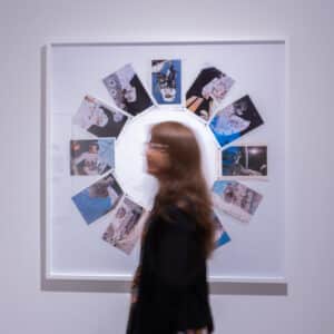 Scholl’s work, rooted in the language of historical artifacts and collective memory, arranges space exploration ephemera into compositions structured by the dodecagon – a recurring motif in his practice that represents cyclical time and cosmic order. Over the past decade, he has meticulously gathered NASA-related materials, including mission patches, declassified documents, photographs, and newspaper clippings, integrating them into intricate assemblages that reframe our understanding of humanity’s relationship with the unknown.