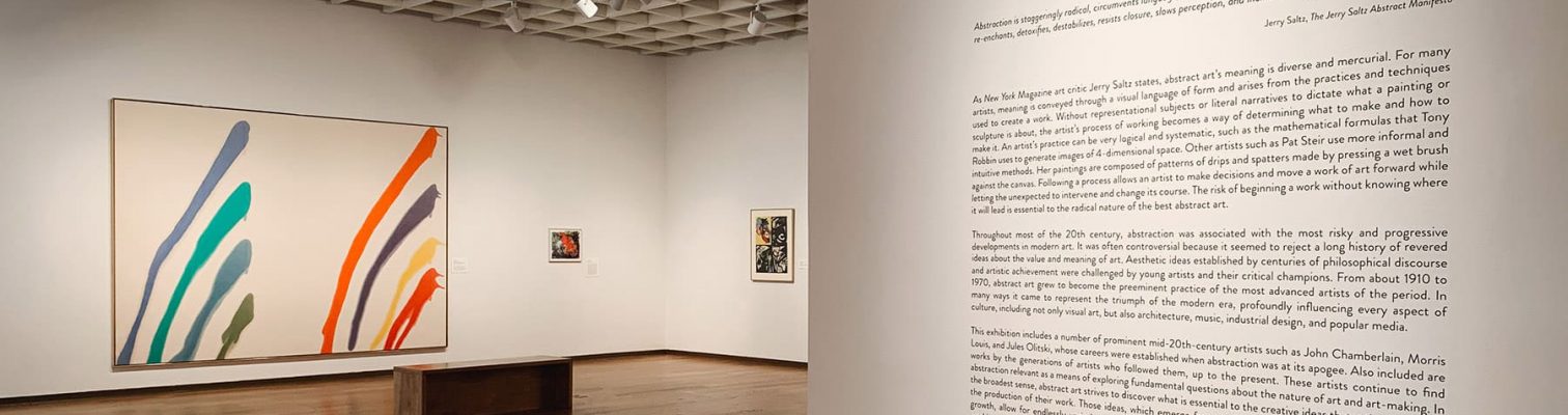 This exhibition includes a number of prominent mid-20th-century artists such as John Chamberlain, Morris Louis, and Jules Olitski, whose careers were established when abstraction was at its apogee. Also included are works by the generations of artists who followed them, up to the present. These artists continue to find abstraction relevant as a means of exploring fundamental questions about the nature of art and art-making. In the broadest sense, abstract art strives to discover what is essential to the creative ideas that artists explore in the production of their work. Those ideas, which emerge from each artist’s scope of interests and creative growth, allow for endlessly varied works. Experimentation and discovery are fundamental to this mode of working and continue to keep the practice vital.