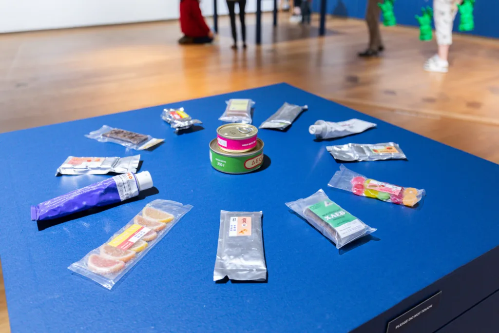Through carefully assembled elements, such as photographs of a spaceship cockpit, the medical examination of an astronaut prior to launch, the tactile immediacy of a glove, and the modest rations designed to sustain life beyond Earth, Scholl constructs a deeply intimate encounter with space exploration. These objects, collected by the artist over several decades, serve as a conduit for shared emotional experience, drawing viewers into a sense of proximity to astronauts and their journeys.